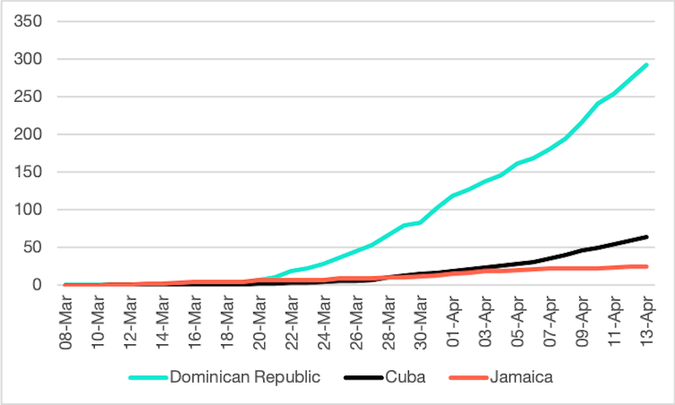 The quality of data varies hugely between countries, with some governments substantially under-reporting cases. Cuba’s reported cases are based on tests using WHO protocols. Two Caribbean neighbours, using similar methods, provide useful comparisons. The Dominican Republic, the most closely comparable in terms of population, income and tourism dependence, shows how the disease might have spread if measures had been less effective. In contrast, Jamaica seems to have succeeded in halting the spread of the disease.